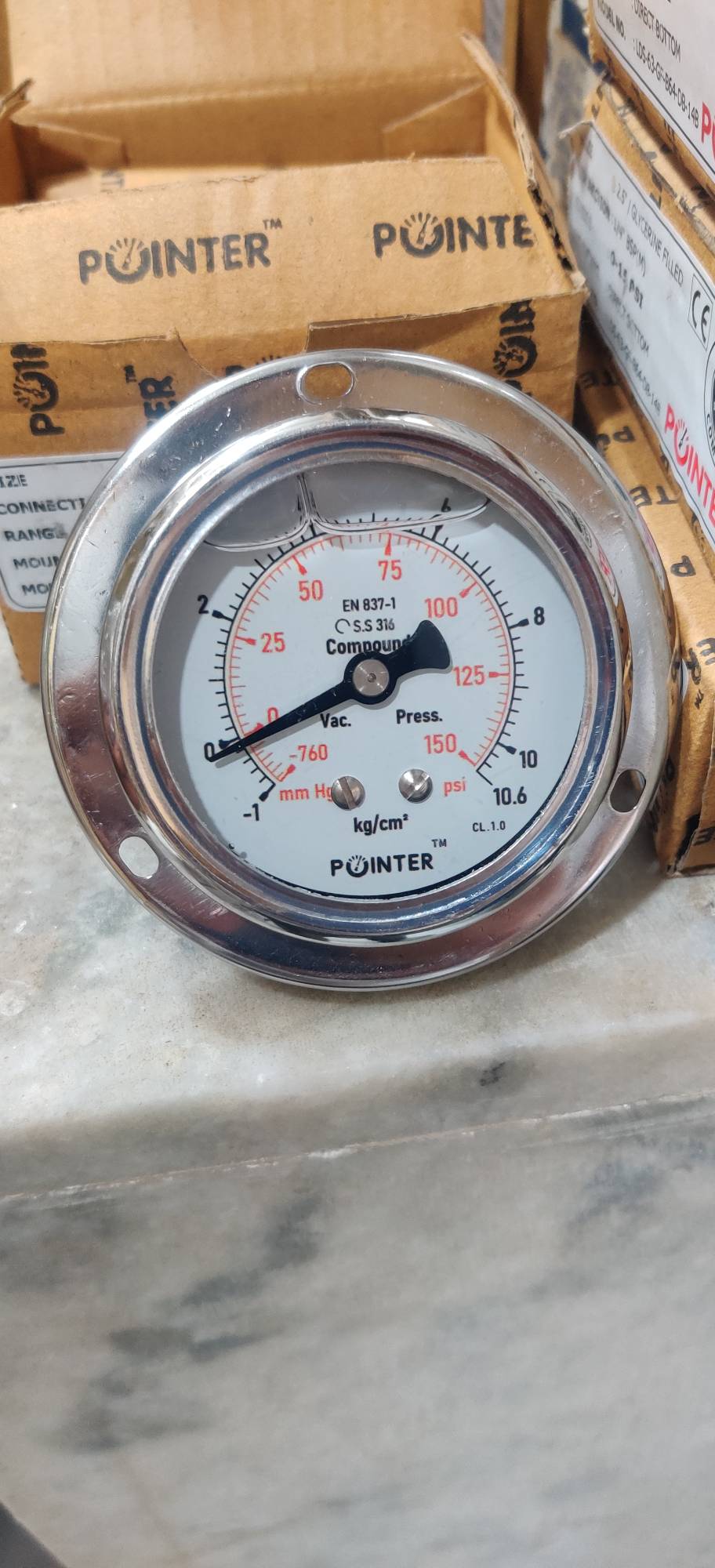 pointer brand complete stainless steel with glyreciene filled pressure gauge 63 mm dial -1 to 10 kg/cm2 1/4 bsp back Connection panel mounting