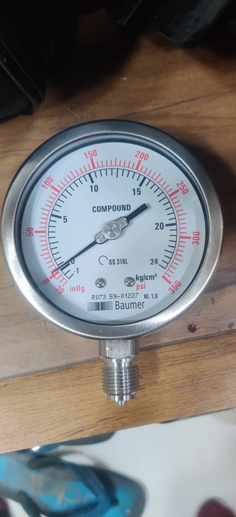 Baumer Compound Pressure Gauges complete stainless Steel with glyreciene filled pressure gauge 100 mm dial -1 to 24 kg/cm2 1/2" bsp bottom mounting