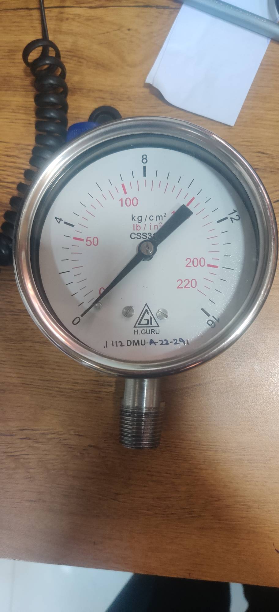 H guru brand complete stainless steel with glyreciene filled pressure gauge dial size 100 mm range 0 to 16 kg 1/2 npt bottom mounting pressure gauge