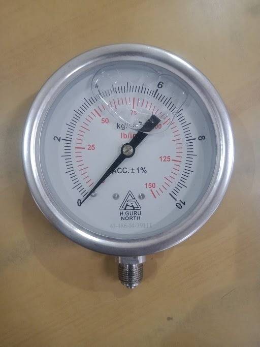H guru brand complete stainless steel with glyreciene filled pressure gauge 100 mm dial 0 to 10 kg and 160 psi 20 mm bsp bottom mounting available ready stock gandhi enterprise