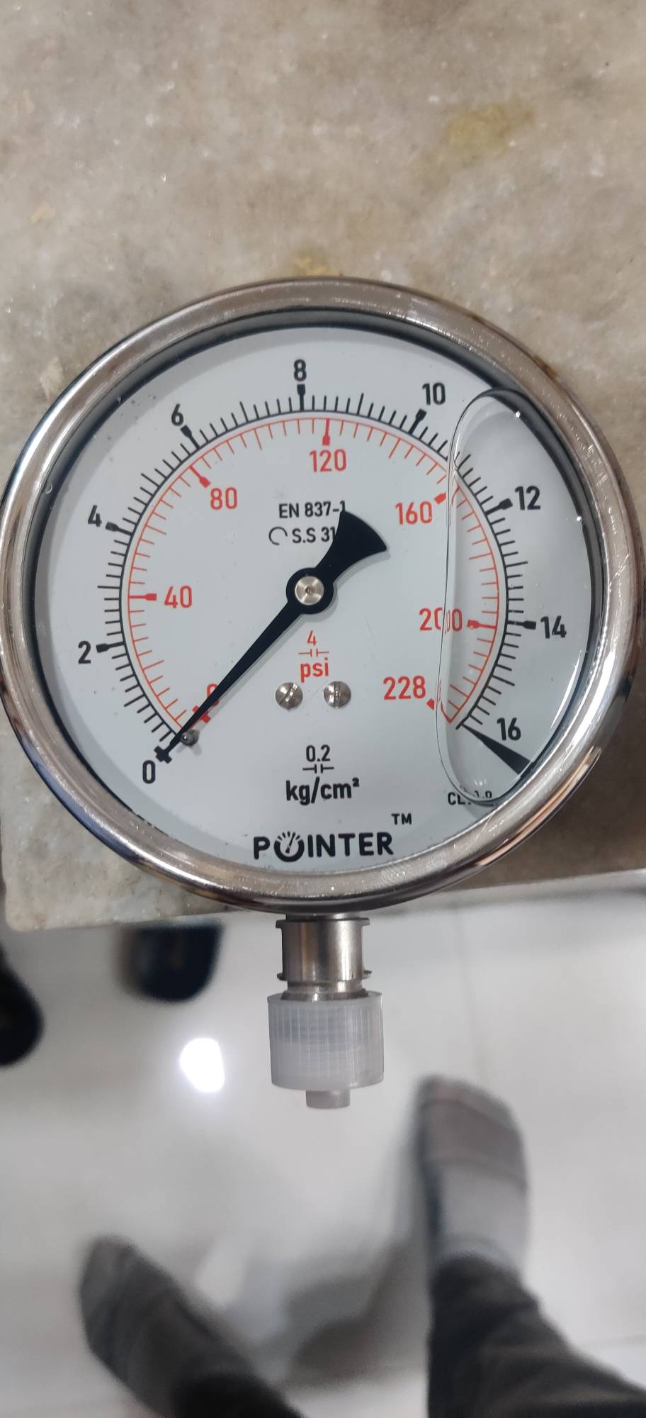Pointer brand complete stainless steel with glyreciene filled pressure gauge 4" dial 0 to 16 kgcm2 3/8 bsp bottom